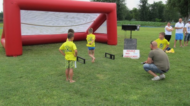 Elektronska naprava za merjenje moči udarca žoge z nogo (elektronski merilec z ekranom, gol, mreža za gol, žoge) s sodniki.